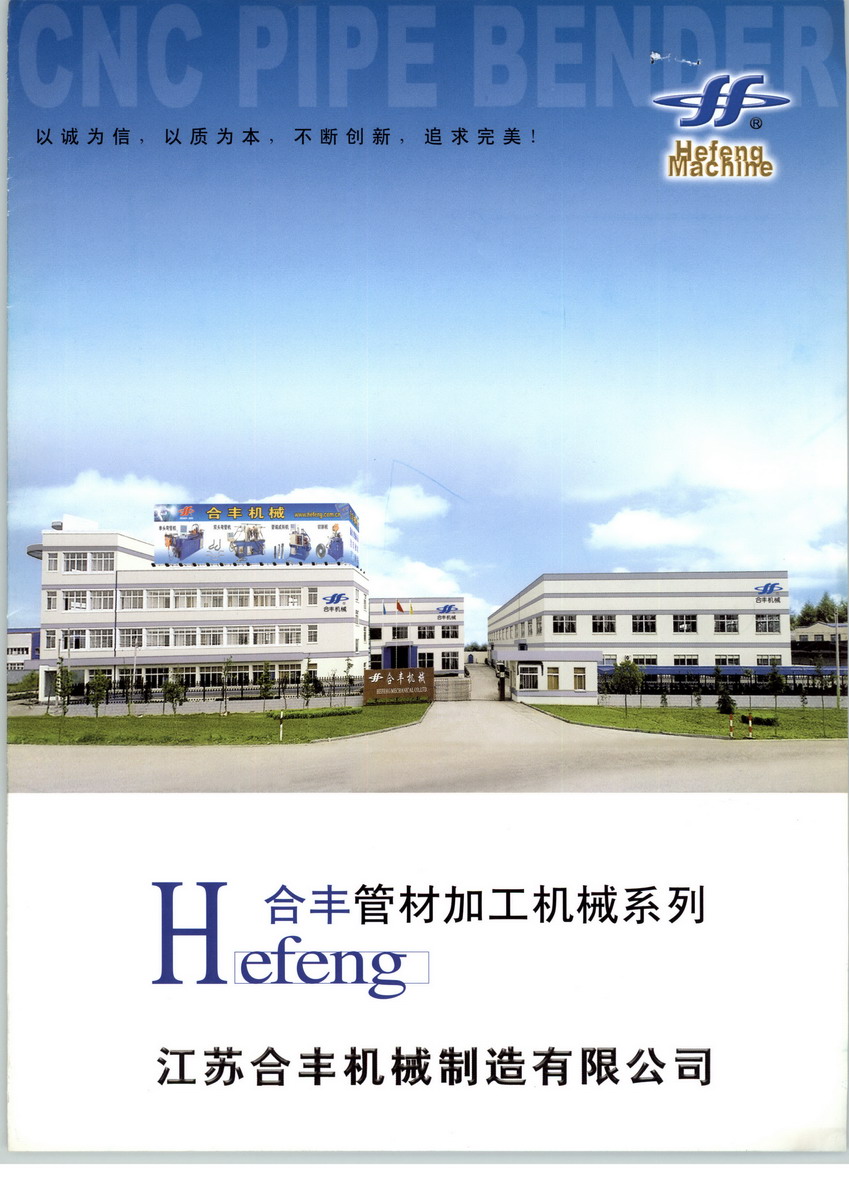江蘇合豐機(jī)械制造有限公司始建于1985年,位于204國道邊,交通極為便利,占地面積2.5萬平方米,是管材加工機(jī)械的專業(yè)生產(chǎn)基地,并通過了ISO9001:2000質(zhì)量管理體系認(rèn)證,全部產(chǎn)品具有出口許可證. 公司具備雄厚的設(shè)計(jì)開發(fā)能力,擁有高精密的生產(chǎn)檢測設(shè)備,在多年生產(chǎn)基礎(chǔ)上,精益求精,不斷改進(jìn)創(chuàng)新,先后研制開發(fā)了微電腦控制DW、SW等系列彎管機(jī)、SG系列管端成型機(jī)、YJ系列金屬圓據(jù)機(jī)、鉚接機(jī)、磨齒機(jī)等自動化管材加工機(jī)械。為汽車、摩托車、電動車、體育健身器材、鋼管家具、旅游休閑用品、水暖衛(wèi)浴,空調(diào)制冷、換熱、造船等行業(yè)的金屬管類制品的加工提供了成套、完美的機(jī)械設(shè)備. 公司在全國形成了售前、售后規(guī)范化的營銷服務(wù)網(wǎng)絡(luò),為新老客戶提供優(yōu)質(zhì)、快捷的服務(wù)。公司遵循“科技為先導(dǎo),質(zhì)量為中心,客戶滿意為目標(biāo)”的宗旨,以精誠合作的態(tài)度和廣大用戶共同創(chuàng)造輝煌燦爛的明天!