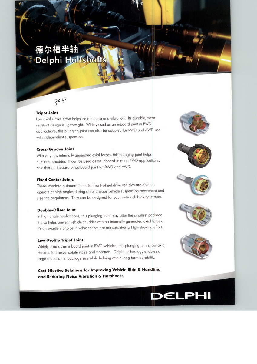 德爾福是全球領(lǐng)先的乘用車、商用車及其它細分市場的電子與技術(shù)供應(yīng)商,在全球30個國家設(shè)有技術(shù)中心、生產(chǎn)基地和客戶服務(wù)中心。德爾福致力于提供面向現(xiàn)實世界的創(chuàng)新,使產(chǎn)品更智能、更安全、更強大、更高效。了解德爾福的更多創(chuàng)新信息,請訪問www.delphi.com。
