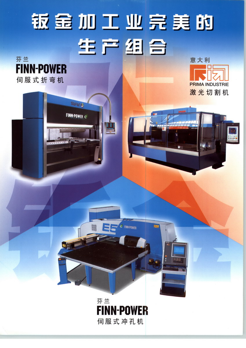 在2008 年, Prima Industrie Group 并購Finn-Power 公司,發(fā)展成 “世界極見規(guī)模專業(yè)鈑金加工設(shè)備制造集團”,主要產(chǎn)品有數(shù)控沖床、數(shù)控復合機床、2D激光切割機、數(shù)控折彎機、自動彎鈑中心、柔性加工生產(chǎn)線設(shè)備…等,拓展國內(nèi)鈑金業(yè)大躍進市場。