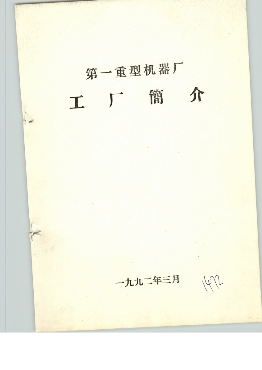 中國第一重型機械集團公司(China first heavy industries,英文縮寫“CFHI”,中文簡稱“中國一重”)前身為第一重型機器廠,始建于1954年,是目前中央管理的涉及國家安全和國民經(jīng)濟命脈的53戶國有重要骨干企業(yè)之一。2008年12月發(fā)起設(shè)立中國第一重型機械股份公司,2010年2月成功實現(xiàn)了整體上市。截至2010年底,擁有在崗職工11679人,其中工程技術(shù)人員2270人,資產(chǎn)總額達291億元。