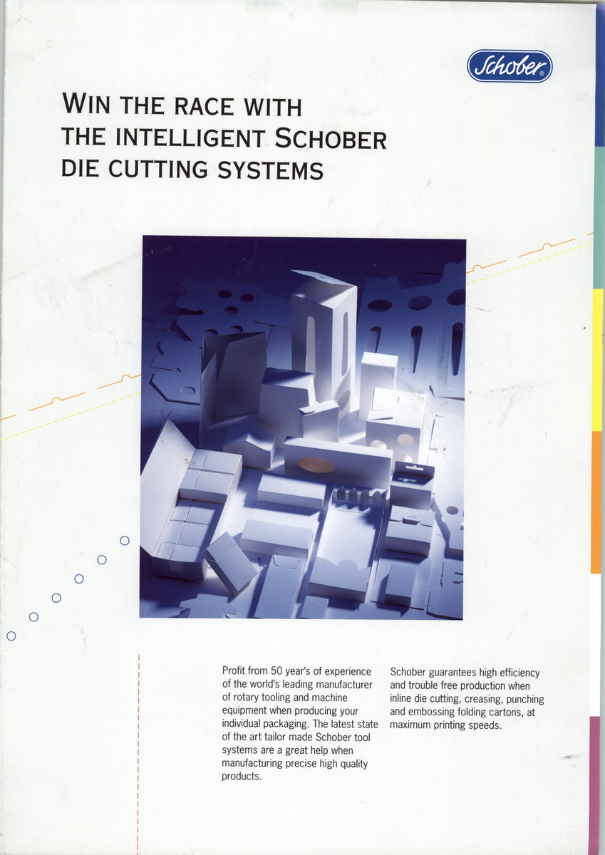 Schober USA, Inc., sells and services high performance rotary punching, die cutting, sealing, embossing equipment. Schober's goal is to supply products, built with the highest engineering standards, so our customers can profit from increases in lifetime, higher production speeds and machine output, and the best - quality products. Schober USA, Inc., and their customers benefit from Schober GmbH's nearly 50 years of experience, covering a variety of worldwide industries. This wide base of knowledge allows Schober USA to be your single - source supplier for all rotary tooling needs. With Schober, you can tap into our extensive research and development in niche market technologies while our products are supported via our worldwide Schober sales and service network. Our future plans include a production facility here in the USA in order to better serve your market requirements and needs.