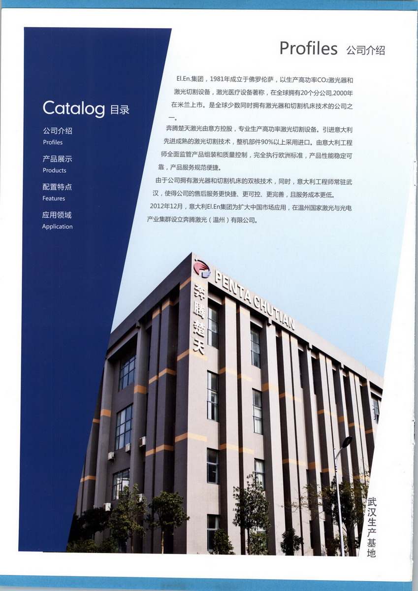 奔騰激光(溫州)有限公司是由意大利El.En集團與武漢楚天激光集團合資組建,由意方控股和提供技術(shù)支持,專業(yè)生產(chǎn)高功率激光切割焊接設(shè)備的高科技企業(yè)。