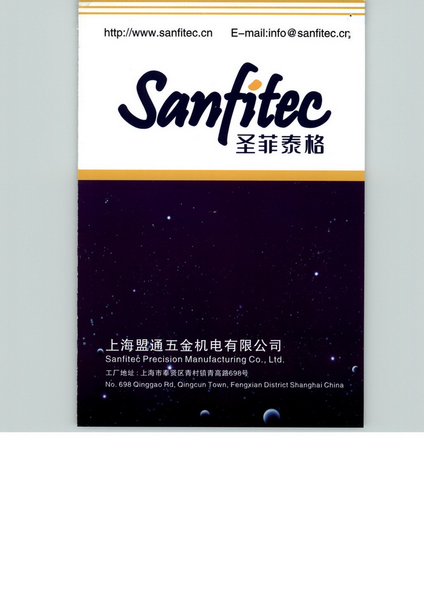 上海盟通五金機電有限公司是一家技工貿(mào)一體化的綜合性企業(yè)。公司成立于2002年,工廠現(xiàn)位于上海市奉賢區(qū)。2006創(chuàng)立品牌"Sanfitec 圣菲泰格",多年來一直注重產(chǎn)品質(zhì)量,致力于建立品牌產(chǎn)品。生產(chǎn)設(shè)備有沖床、折彎機, 車床、磨床、焊接機,注塑機 。檢驗設(shè)備有投影儀,硬度儀,膜厚儀,鹽霧測試儀等。 公司多年來一直致力于沖壓件、鈑金件、機加件、焊接件、水暖安裝工具、塑料件的生產(chǎn),經(jīng)驗豐富。此外廠內(nèi)還擁有模具車間,進(jìn)行模具的設(shè)計和制造。除了來圖、來樣加工外,還可以供產(chǎn)品裝配、開發(fā)設(shè)計、質(zhì)檢等各項服務(wù)。工廠周邊有完善的熱處理、表面處理等配套工廠。交通便利,距離上海港及機場很近,大大節(jié)約運輸物流成本。 公司客戶主要遍及美國、加拿大、德國、法國、意大利、西班牙、荷蘭等歐美發(fā)達(dá)國家。公司不僅與國外制造商,分銷商,傭金商合作,還擁有與國外公司在華辦事處及采購商合作的豐富經(jīng)驗。 公司以質(zhì)量為本,遵循 “ 尊重、創(chuàng)新、敬業(yè)、共贏”的企業(yè)文化,秉承“客戶至上,服務(wù)為本,質(zhì)量第一”的經(jīng)營理念。上海盟通五金機電有限公司將致力于成為您首選的工業(yè)零配件的合作伙伴!