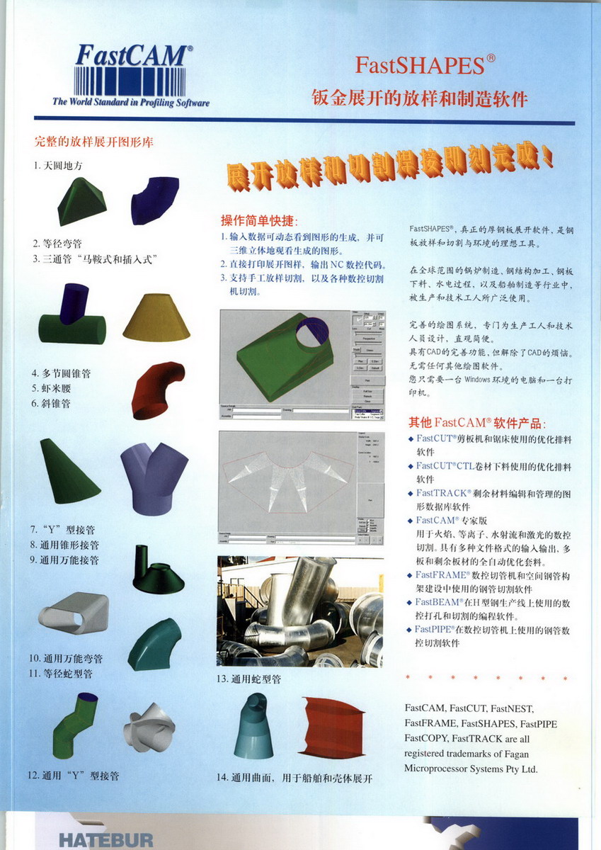 FastCAM是一款全自動共邊連割套料軟件(當前版本V 5.10)該軟件主要針對數(shù)控切割機,包括火焰、等離子、激光和水刀等數(shù)控切割機,用于任意形狀零件的繪圖、編程、套料、校驗和數(shù)控切割。通過FastCAM可以提高鋼材套料率,有效節(jié)省鋼材; 提高編程、套料和切割工作效率,有效提高切割生產效率。FastCAM全自動共邊套料功能是在自動套料過程中實現(xiàn)矩形零件和非矩形零件,即任意零件不同邊長的自動共邊,無需手工編輯,自動處理不同零件的共邊和連割,為防止和避免熱切割變形,自動處理切割方向和穿孔點的位置,借用切割過的邊緣,直接預熱切割,避免穿孔。共邊套料切割的主要用途:一是避免和減少零件間的切割間距,提高鋼材利用率,二是共邊切割使每個矩形零件少切一條或二條邊,有效減少切割行程,提高切割效率,三是共邊切割借用切割過的邊緣預熱,避免穿孔,減少預熱時間,提高切割效率,同時有效節(jié)省割嘴和耗材。