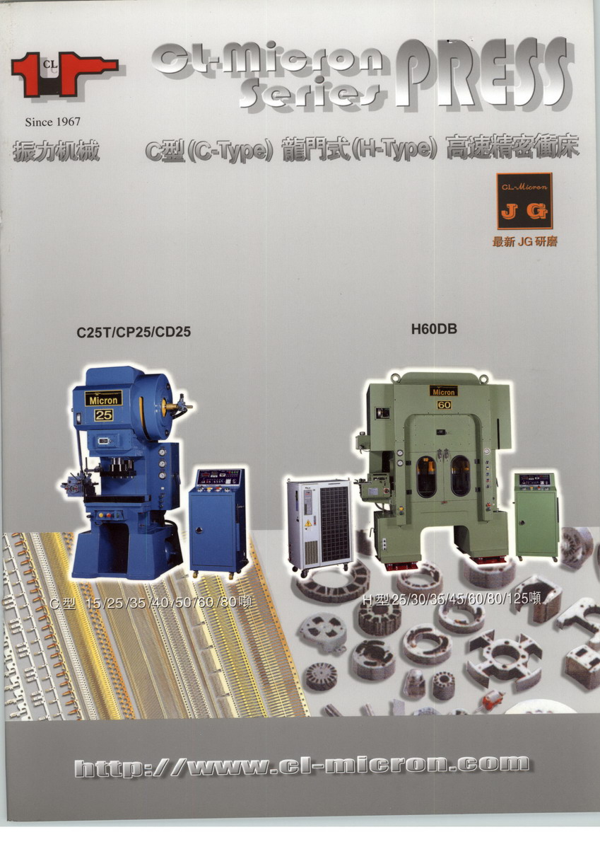 振力機械股份有限公司成立于1967年,專業(yè)生產(chǎn)高速精密沖床及夾式送料機 本公司高速沖床類型如下: 1、三圓導柱c型15t/25t/35t/40t/50t/60t/80t 2、龍門式四/八圓導柱式h型30t/35t/45t/60t/80t/125t 3、雙曲軸系列產(chǎn)品 我司產(chǎn)品已遠銷美、韓、南亞、東南亞等國家,國內(nèi)已受到廣大客戶良好的評價和信任度。 為使顧客獲得更高的滿意度,我公司將繼續(xù)追求精益求精,提供最佳產(chǎn)品及高質(zhì)量的服務,回報客戶。 公司簡介如下: 1967年 成立振力機械公司(前身)于臺北縣三重市/銷售沖床零件 1969年 開發(fā)第一部臥式肘節(jié)式?jīng)_床 1970年 銷售出口 第一條干電池鋅殼沖床生產(chǎn)線到印尼的abc公司 1975年 投資興建新莊廠/銷售臥式肘節(jié)式?jīng)_床超過150部 1976年 遷移到新莊廠 1987年 開發(fā)c型高速精密沖床/臺灣第一部三圓導柱式高速精密沖床 1989年 開發(fā)h型龍門式高速精密沖床 1991年 鴻海公司開始向本公司購買h型龍門式高速精密沖床 1993年 開發(fā)ip系列肘節(jié)式高速精密沖床/美國molex開始向本公司購買h型龍門式高速精密沖床 1993年 成立美國服務中心/新加坡半導體廠fine stamping購買高速精密沖床 1993年 開發(fā)夾式送料機gf90 1994年 興建龍?zhí)抖S 1995年 開發(fā)c一type cd系列/振力高速精密沖床銷售超過2000臺/成立中國深圳服務中心 1996年 開發(fā)h一type龍門式db系列 1996年 日本山一電機(yamaichi)股票上市公司開始向本公司購買h型龍門式高速精密沖床 2001年 興建振力機械(昆山)有限公司 2001年 精英集團欽騰公司共向本公司購買超過140部各式高速精密沖床 2002年 tyco中國深圳公司開始向本公司購買龍門式?jīng)_床 2003年 成立溫州辦事處 2004年 美商安費諾開始向本公司購買龍門式?jīng)_床 2006年 引進高精密jg研磨床開建零組件/成立廈門及廣東中山服務中心 2007年 成立寧波服務中心/承建三期