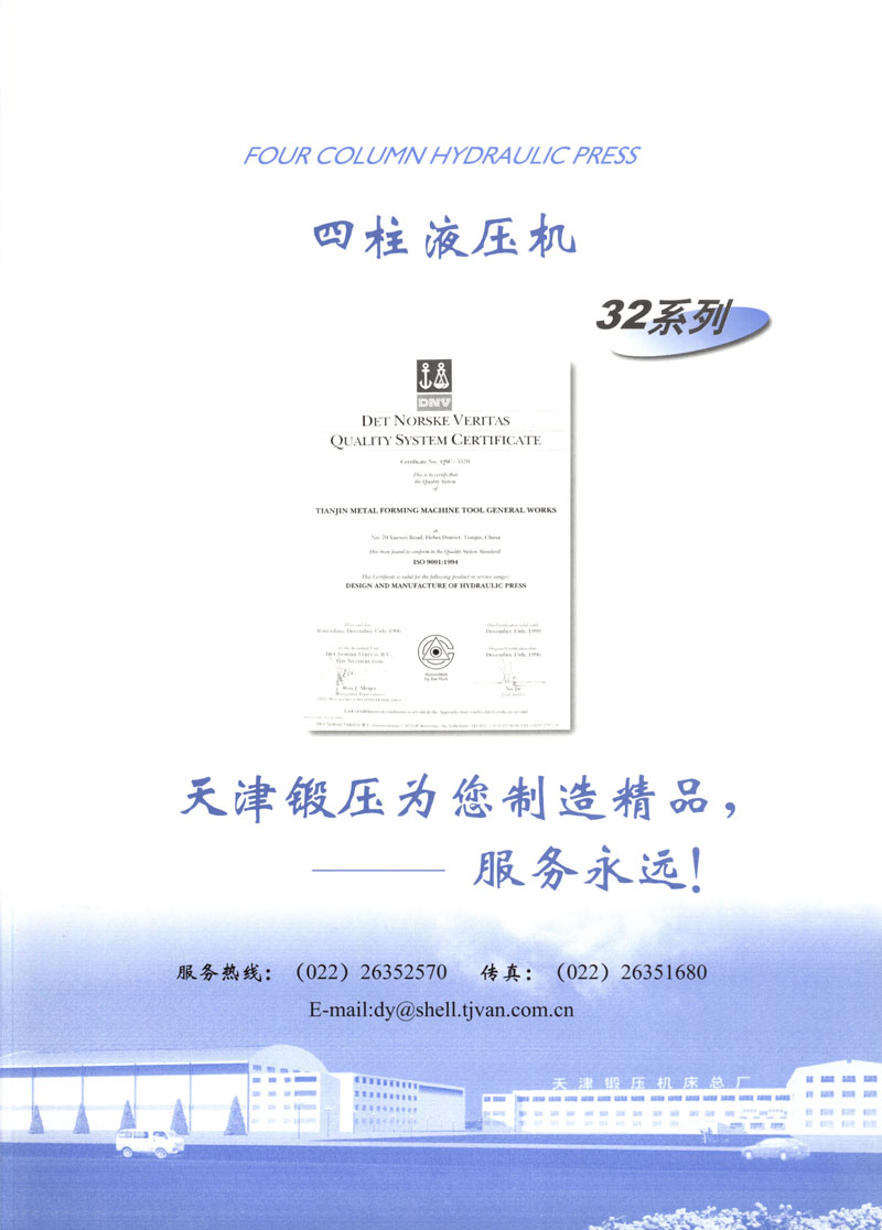 天津市鍛壓機(jī)床總廠是我國起步最早的企業(yè),現(xiàn)有固定資產(chǎn)2.4億元各類專業(yè)技術(shù)人員480人,是機(jī)械部大型骨干企業(yè)。自我廠自行設(shè)計國內(nèi)第一臺液壓機(jī),開創(chuàng)了我國中小型液壓機(jī)生產(chǎn)歷史以來,目前擁有26個系列,300余品種,產(chǎn)品從80KN至5000KN,以形成年產(chǎn)1200臺各類液壓機(jī)的生產(chǎn)能力,居國內(nèi)同行業(yè)之首。1983年YT32-315四柱液壓機(jī)獲國家銀牌,1990年YT32-630/1030雙動力拉伸液壓機(jī)一舉榮獲同行業(yè)唯一的國家金獎另有部優(yōu)產(chǎn)品3項,市優(yōu)產(chǎn)品5項。產(chǎn)品廣泛適用于汽車制造、粉末冶金、金屬冷擠、輕工家電、化工機(jī)戒、航空航天、模具磨料、機(jī)戒制造等行業(yè),被國家指定為替代進(jìn)口產(chǎn)品,行銷全國,產(chǎn)品出口到日本、荷蘭、東南亞等20多個地區(qū)和國家、市場占有率居全國同行業(yè)第一。