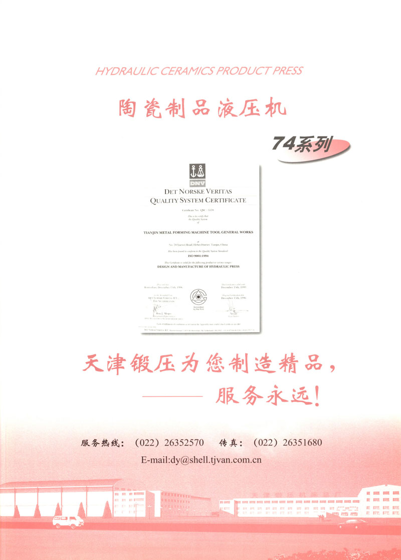 天津市鍛壓機床總廠是我國起步最早的企業(yè),現(xiàn)有固定資產(chǎn)2.4億元各類專業(yè)技術(shù)人員480人,是機械部大型骨干企業(yè)。自我廠自行設(shè)計國內(nèi)第一臺液壓機,開創(chuàng)了我國中小型液壓機生產(chǎn)歷史以來,目前擁有26個系列,300余品種,產(chǎn)品從80KN至5000KN,以形成年產(chǎn)1200臺各類液壓機的生產(chǎn)能力,居國內(nèi)同行業(yè)之首。1983年YT32-315四柱液壓機獲國家銀牌,1990年YT32-630/1030雙動力拉伸液壓機一舉榮獲同行業(yè)唯一的國家金獎另有部優(yōu)產(chǎn)品3項,市優(yōu)產(chǎn)品5項。產(chǎn)品廣泛適用于汽車制造、粉末冶金、金屬冷擠、輕工家電、化工機戒、航空航天、模具磨料、機戒制造等行業(yè),被國家指定為替代進口產(chǎn)品,行銷全國,產(chǎn)品出口到日本、荷蘭、東南亞等20多個地區(qū)和國家、市場占有率居全國同行業(yè)第一。