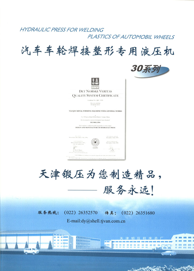 天津市鍛壓機(jī)床總廠是我國(guó)起步最早的企業(yè),現(xiàn)有固定資產(chǎn)2.4億元各類專業(yè)技術(shù)人員480人,是機(jī)械部大型骨干企業(yè)。自我廠自行設(shè)計(jì)國(guó)內(nèi)第一臺(tái)液壓機(jī),開創(chuàng)了我國(guó)中小型液壓機(jī)生產(chǎn)歷史以來,目前擁有26個(gè)系列,300余品種,產(chǎn)品從80KN至5000KN,以形成年產(chǎn)1200臺(tái)各類液壓機(jī)的生產(chǎn)能力,居國(guó)內(nèi)同行業(yè)之首。1983年YT32-315四柱液壓機(jī)獲國(guó)家銀牌,1990年YT32-630/1030雙動(dòng)力拉伸液壓機(jī)一舉榮獲同行業(yè)唯一的國(guó)家金獎(jiǎng)另有部?jī)?yōu)產(chǎn)品3項(xiàng),市優(yōu)產(chǎn)品5項(xiàng)。產(chǎn)品廣泛適用于汽車制造、粉末冶金、金屬冷擠、輕工家電、化工機(jī)戒、航空航天、模具磨料、機(jī)戒制造等行業(yè),被國(guó)家指定為替代進(jìn)口產(chǎn)品,行銷全國(guó),產(chǎn)品出口到日本、荷蘭、東南亞等20多個(gè)地區(qū)和國(guó)家、市場(chǎng)占有率居全國(guó)同行業(yè)第一。