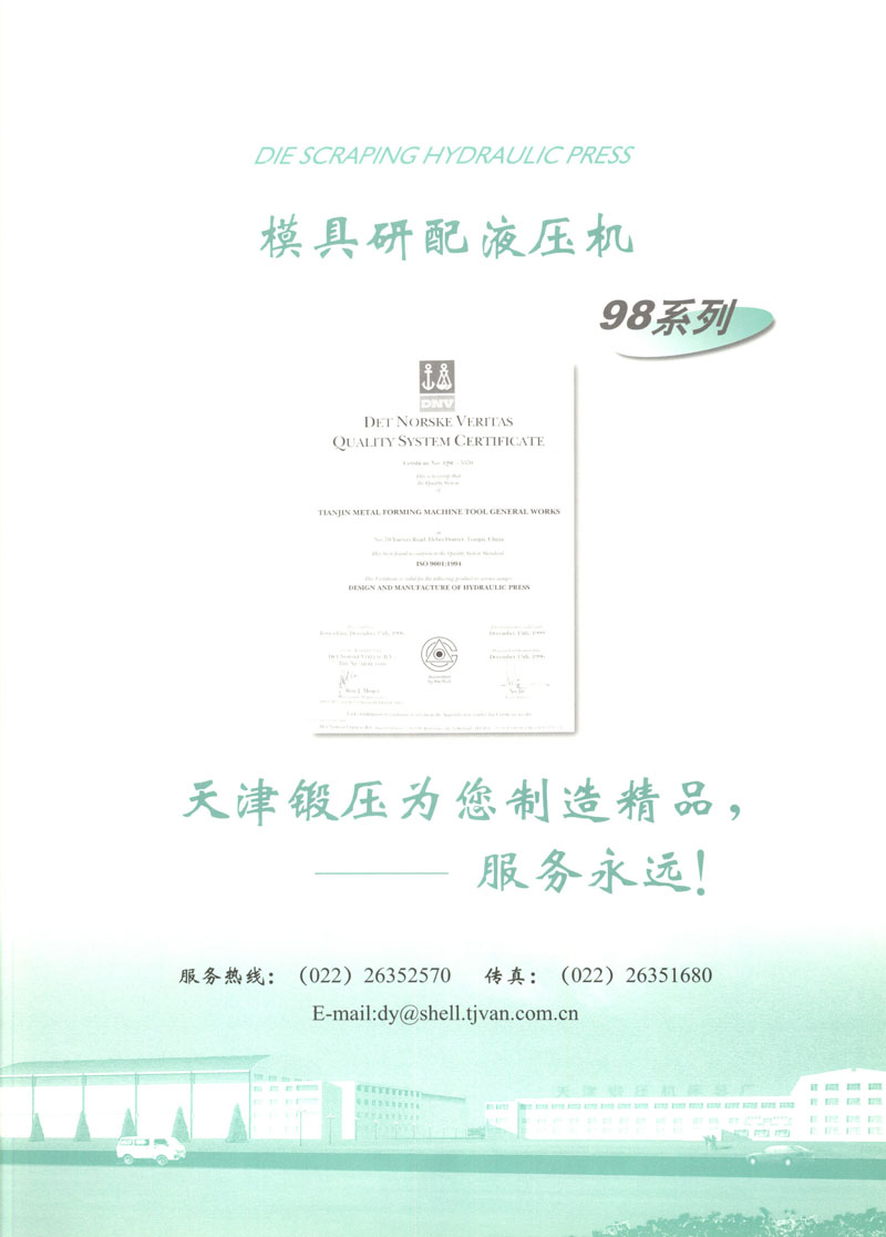 天津市鍛壓機(jī)床總廠是我國起步最早的企業(yè),現(xiàn)有固定資產(chǎn)2.4億元各類專業(yè)技術(shù)人員480人,是機(jī)械部大型骨干企業(yè)。自我廠自行設(shè)計(jì)國內(nèi)第一臺(tái)液壓機(jī),開創(chuàng)了我國中小型液壓機(jī)生產(chǎn)歷史以來,目前擁有26個(gè)系列,300余品種,產(chǎn)品從80KN至5000KN,以形成年產(chǎn)1200臺(tái)各類液壓機(jī)的生產(chǎn)能力,居國內(nèi)同行業(yè)之首。1983年YT32-315四柱液壓機(jī)獲國家銀牌,1990年YT32-630/1030雙動(dòng)力拉伸液壓機(jī)一舉榮獲同行業(yè)唯一的國家金獎(jiǎng)另有部?jī)?yōu)產(chǎn)品3項(xiàng),市優(yōu)產(chǎn)品5項(xiàng)。產(chǎn)品廣泛適用于汽車制造、粉末冶金、金屬冷擠、輕工家電、化工機(jī)戒、航空航天、模具磨料、機(jī)戒制造等行業(yè),被國家指定為替代進(jìn)口產(chǎn)品,行銷全國,產(chǎn)品出口到日本、荷蘭、東南亞等20多個(gè)地區(qū)和國家、市場(chǎng)占有率居全國同行業(yè)第一。