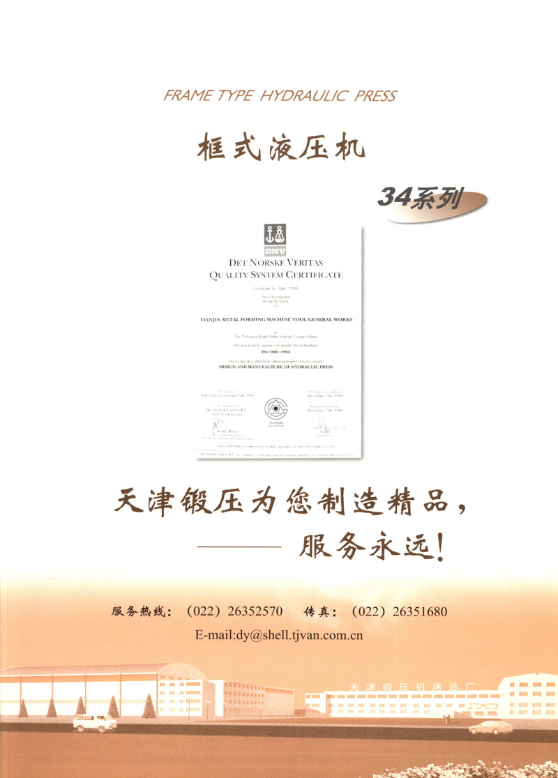 天津市鍛壓機床總廠是我國起步最早的企業(yè),現(xiàn)有固定資產(chǎn)2.4億元各類專業(yè)技術(shù)人員480人,是機械部大型骨干企業(yè)。自我廠自行設(shè)計國內(nèi)第一臺液壓機,開創(chuàng)了我國中小型液壓機生產(chǎn)歷史以來,目前擁有26個系列,300余品種,產(chǎn)品從80KN至5000KN,以形成年產(chǎn)1200臺各類液壓機的生產(chǎn)能力,居國內(nèi)同行業(yè)之首。1983年YT32-315四柱液壓機獲國家銀牌,1990年YT32-630/1030雙動力拉伸液壓機一舉榮獲同行業(yè)唯一的國家金獎另有部優(yōu)產(chǎn)品3項,市優(yōu)產(chǎn)品5項。產(chǎn)品廣泛適用于汽車制造、粉末冶金、金屬冷擠、輕工家電、化工機戒、航空航天、模具磨料、機戒制造等行業(yè),被國家指定為替代進口產(chǎn)品,行銷全國,產(chǎn)品出口到日本、荷蘭、東南亞等20多個地區(qū)和國家、市場占有率居全國同行業(yè)第一。