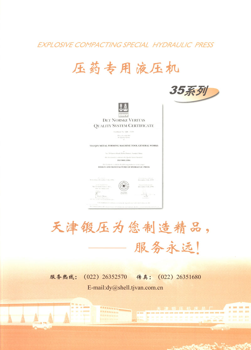 天津市鍛壓機(jī)床總廠是我國起步最早的企業(yè),現(xiàn)有固定資產(chǎn)2.4億元各類專業(yè)技術(shù)人員480人,是機(jī)械部大型骨干企業(yè)。自我廠自行設(shè)計(jì)國內(nèi)第一臺(tái)液壓機(jī),開創(chuàng)了我國中小型液壓機(jī)生產(chǎn)歷史以來,目前擁有26個(gè)系列,300余品種,產(chǎn)品從80KN至5000KN,以形成年產(chǎn)1200臺(tái)各類液壓機(jī)的生產(chǎn)能力,居國內(nèi)同行業(yè)之首。1983年YT32-315四柱液壓機(jī)獲國家銀牌,1990年YT32-630/1030雙動(dòng)力拉伸液壓機(jī)一舉榮獲同行業(yè)唯一的國家金獎(jiǎng)另有部優(yōu)產(chǎn)品3項(xiàng),市優(yōu)產(chǎn)品5項(xiàng)。產(chǎn)品廣泛適用于汽車制造、粉末冶金、金屬冷擠、輕工家電、化工機(jī)戒、航空航天、模具磨料、機(jī)戒制造等行業(yè),被國家指定為替代進(jìn)口產(chǎn)品,行銷全國,產(chǎn)品出口到日本、荷蘭、東南亞等20多個(gè)地區(qū)和國家、市場占有率居全國同行業(yè)第一。