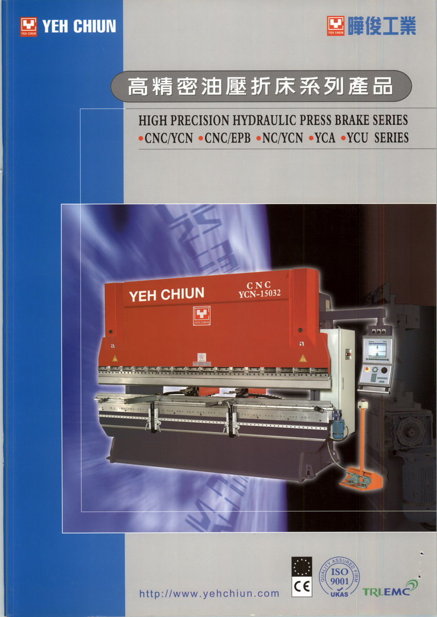 臺(tái)灣制造油壓機(jī)械的著名廠(chǎng)商-曄俊工業(yè)股份有限公司,繼1998年通過(guò)CE、國(guó)際安規(guī)EMC電磁兼容認(rèn)證,1999年4月獲得ISO-9002國(guó)際品保認(rèn)證,2001年再度獲得ISO-9001國(guó)際品保認(rèn)證,為該公司所出廠(chǎng)的油壓機(jī)械再增添一份保證。