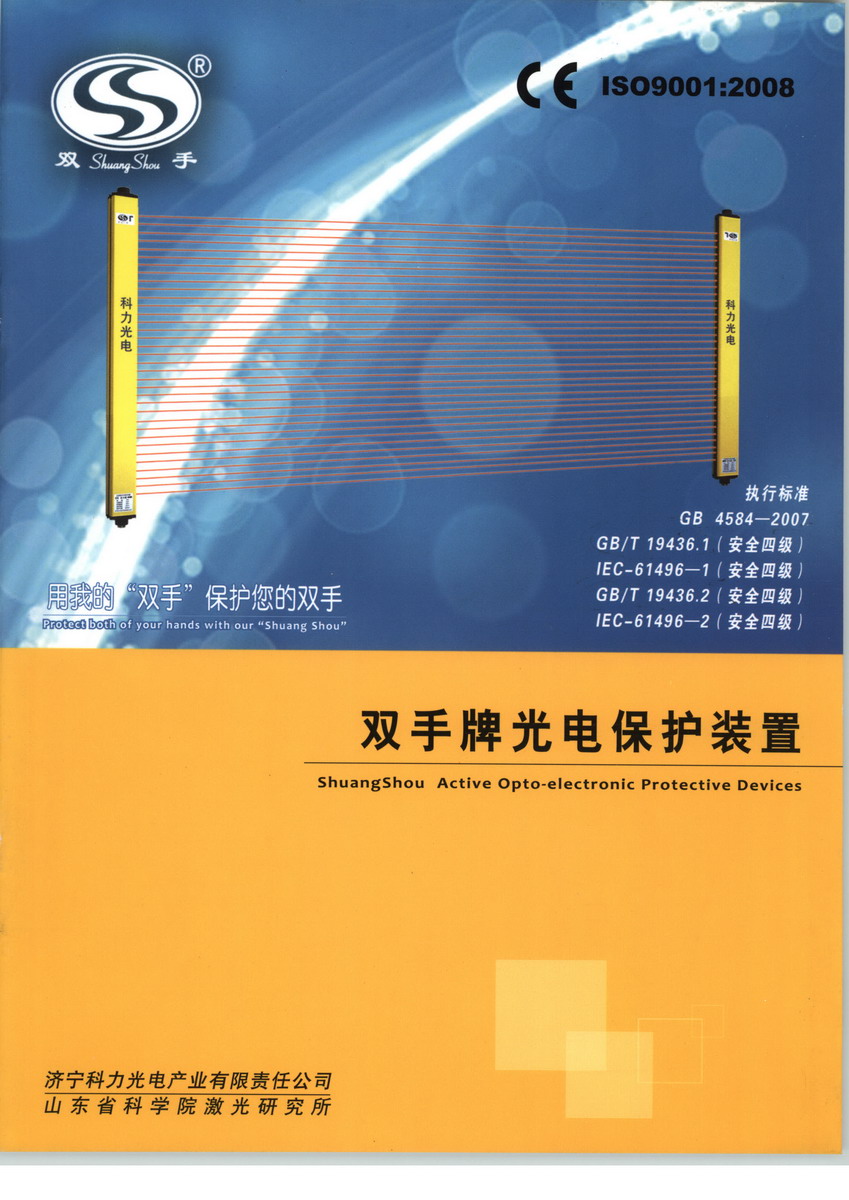 公司的主導產(chǎn)品是“雙手”牌LDKS型光電保護器系列產(chǎn)品,主要用于鍛壓行業(yè),與沖壓壓力機、壓膜機、工業(yè)機械手、包裝設備及其它自動化設備,也可用于多面區(qū)域保護“雙手”牌LDKS型光電保護器,榮獲1995年度“新產(chǎn)品”稱號,同年科力公司被山東省科委審定為高新技術企業(yè),并于1998年4月通過了ISO9001國際質(zhì)量體系認證,2005年通過了ISO9001:2000質(zhì)量體系認證,于2005年10月,公司產(chǎn)品獲得歐洲CE認證,具備了完善的質(zhì)量保證體系,可限度的滿足客戶的需求。目前公司產(chǎn)品的銷售遍及全國各主要鍛壓機床廠,各大中型汽車制造廠、摩托車制造廠、家電生產(chǎn)廠等單位,部分產(chǎn)品隨主機出口國外。公司依靠優(yōu)越的產(chǎn)品質(zhì)量,周到的服務贏得了客戶的廣泛贊譽。