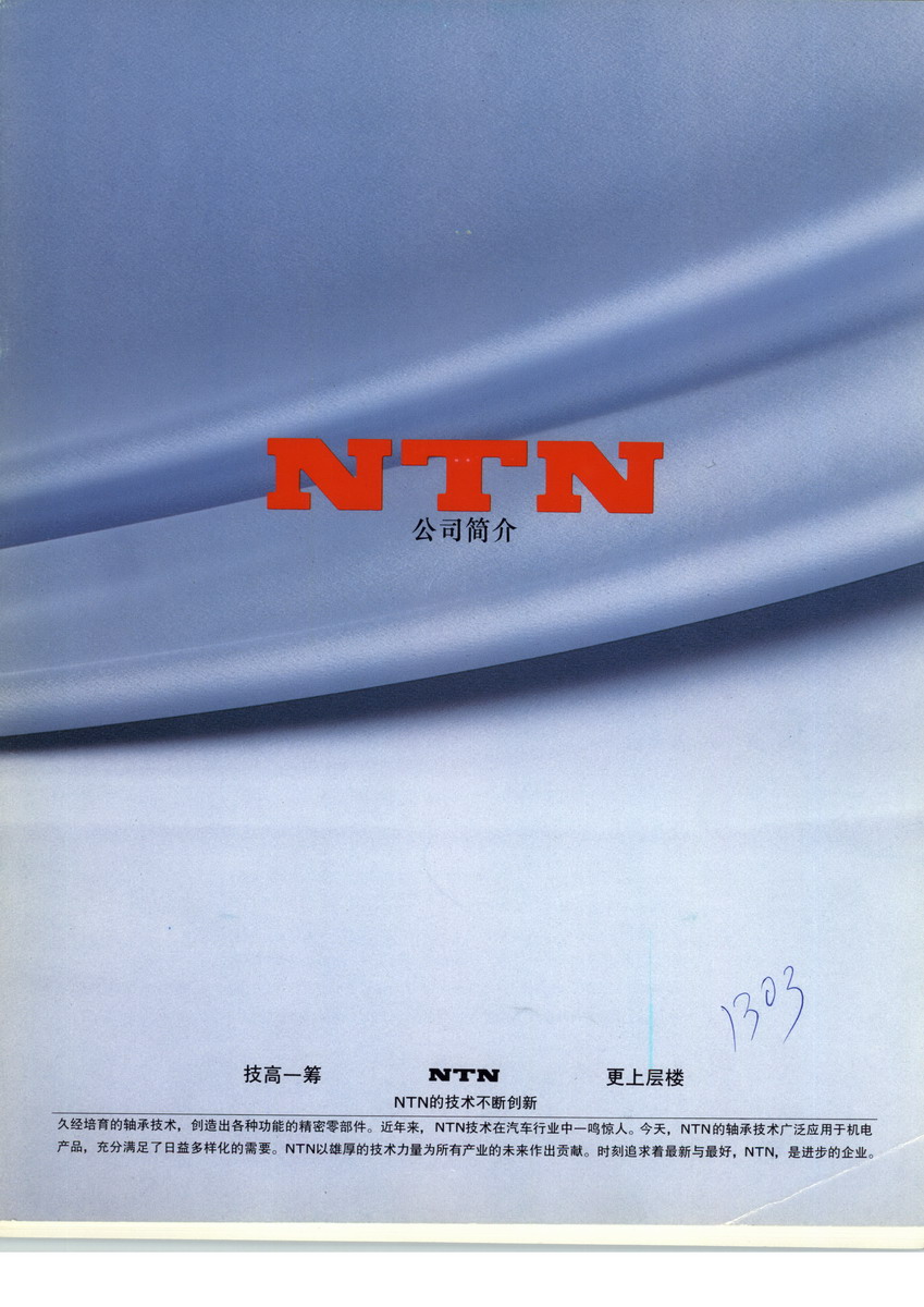 NTN東洋軸承株式會社是世界綜合性精密機(jī)械制造廠家之一,該公司于1918年成立于日本,總部設(shè)在大阪市西區(qū),在日本國內(nèi)有11家制作所,25家營業(yè)所和3家研究所;在國外擁有20家獨(dú)資生產(chǎn)廠、2家研究所和48家營業(yè)所。NTN的生產(chǎn)、銷售、技術(shù)各個(gè)部門努力不懈的開拓與深化自己的專業(yè)領(lǐng)域,同時(shí)又相互有機(jī)地結(jié)合起來。現(xiàn)任董事長為鈴木泰信。