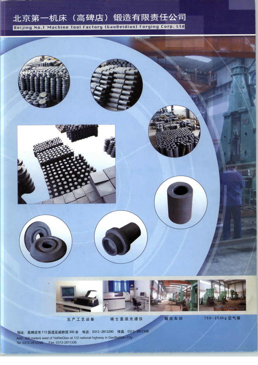 我公司是由國家重點企業(yè)一一北京第一機床廠與河北省高碑店市合資興建的一家股份制企業(yè)。公司總投資3 O O O余萬元,占地面積4 O余畝。秉承北京第一機床廠5 O多年的專業(yè)鍛造歷史,鍛造技術(shù)精湛,設(shè)備齊全,是華北地區(qū)規(guī)模較大的專業(yè)鍛造企業(yè),是中國鍛壓協(xié)會會員單位。我公司主要生產(chǎn)設(shè)備有:3噸模鍛錘和3噸自由鍛錘、1噸自由鍛錘、7 5 O公斤、5 6 O公斤和2 5 O公斤自由鍛錘等,壓力機3臺,機加工專用設(shè)備和半自動設(shè)備2 O余臺,能生產(chǎn)多種優(yōu)質(zhì)鍛件c如:各種齒輪、軸、套、法蘭、支承座、鍵、板等幾千個品種規(guī)格,廣泛應(yīng)用于機床、冶金、電力、礦山、地質(zhì)工程、石油、航空、汽車、鐵路等機械加工制造業(yè),并且可根據(jù)用戶需求對鍛件產(chǎn)品進(jìn)行深加工。根據(jù)目前設(shè)備生產(chǎn)能力,我公司可滿足社會各界朋友對鍛件產(chǎn)品的需求。滿足社會各界朋友對鍛件產(chǎn)品的需求。公司現(xiàn)有員工.1 O 0余名,其中高級工程師3名,工程師、經(jīng)濟(jì)師6名,具有2 O多年鍛造經(jīng)驗的專業(yè)技術(shù)人員2 O多名,經(jīng)專業(yè)培訓(xùn)上崗人員5 O多名,碩士研究生、大學(xué)本科畢業(yè)生6名,大中專畢業(yè)生1 5名。我公司已通過I S O 9 O 0 1國際質(zhì)量體系認(rèn)證,并且將始終堅持“質(zhì)量第一,客戶至上,制造精良"的經(jīng)營理念,隨時滿足客戶的需求。公司位于河北省高碑店市1 1 2國道亞威橋西側(cè)路北,交通便利,環(huán)境優(yōu)雅,屬花園式工廠。