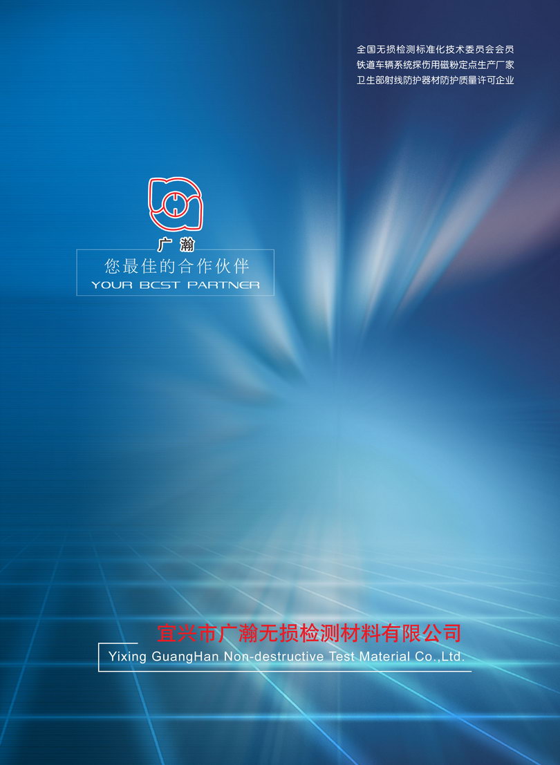 宜興市廣瀚無損檢測(cè)材料有限公司是研制、開發(fā)、生產(chǎn)無損檢測(cè)材料的專業(yè)公司,同時(shí)制造各種規(guī)格的射線防護(hù)設(shè)備,承攬射線防護(hù)工程的設(shè)計(jì)及安裝,環(huán)境保護(hù)機(jī)械的制造,是國內(nèi)生產(chǎn)無損檢測(cè)材料、射線防護(hù)設(shè)備、環(huán)保設(shè)備較早的企業(yè),公司是全國無損檢測(cè)標(biāo)準(zhǔn)化技術(shù)委員會(huì)會(huì)員單位、原鐵道車輛系統(tǒng)探傷用磁粉定點(diǎn)生產(chǎn)廠家、衛(wèi)生部射線防護(hù)器材防護(hù)質(zhì)量監(jiān)測(cè)中心質(zhì)量許可企業(yè)、中國石油天然氣集團(tuán)公司物資供應(yīng)商準(zhǔn)入單位、中國石油工程建設(shè)協(xié)會(huì)無損檢測(cè)專業(yè)委員會(huì)會(huì)員、中國鍛壓協(xié)會(huì)會(huì)員單位,中國鐵道科學(xué)研究院金屬及化學(xué)研究所鐵路用無損檢測(cè)材料檢驗(yàn)合格單位,銀行資信等級(jí)AAA級(jí),無錫市AAA級(jí)“重合同守信用企業(yè)”,公司注冊(cè)資本人民幣3568萬元。目前主要產(chǎn)品有:射線探傷材料系列、磁粉探傷材料系列、射線防護(hù)設(shè)備系列、著色滲透探傷材料系列及環(huán)境保護(hù)機(jī)械系列。公司規(guī)模在不斷擴(kuò)大,資質(zhì)也較齊全,并擁有技術(shù)精良、經(jīng)驗(yàn)豐富、對(duì)工作認(rèn)真負(fù)責(zé)的管理人員、生產(chǎn)員工及防護(hù)工程施工隊(duì)伍。公司已在同行業(yè)中率先通過ISO9001:2008質(zhì)量體系認(rèn)證。公司在國家重點(diǎn)工程“西氣東輸一線、二線、三線管道無損檢測(cè)工程”“川氣東送管道無損檢測(cè)工程”“陜京一線、二線、三線、四線管道無損檢測(cè)工程”中為各管道公司無損檢測(cè)公司定制了管道探傷專用特種增感屏、暗袋、定位標(biāo)記尺等材料。在“澀寧蘭輸氣管道無損檢測(cè)工程”、“蘭成渝輸油管道無損檢測(cè)工程”及國外“蘇丹管道、利比亞管道、哈薩克斯坦中亞管道、孟加拉國管道、伊拉克管道、中緬管道、中俄管道等無損檢測(cè)工程”中配套生產(chǎn)了許多管道無損檢測(cè)專用材料,均得到使用單位的好評(píng)及認(rèn)可。公司生產(chǎn)的YC-2型、YC-5型熒光磁粉、GH-20型復(fù)合熒光磁粉、(干法)濕法磁粉、分散劑、消泡劑、防銹劑、防腐劑、GH-50型熒光磁粉濃縮液、磁粉探傷載液、罐裝磁懸液、反差增強(qiáng)劑、GPT-II型著色滲透探傷劑等材料,已廣泛使用在鐵路、航空、機(jī)械、石油、石化等行業(yè)的無損檢測(cè)中,是廣鐵集團(tuán)、成都鐵路局、南昌鐵路局、蘭州鐵路局、昆明鐵路局、呼和浩特鐵路局、青藏鐵路公司、鄭州鐵路局、南寧鐵路局等路局的探傷材料供應(yīng)商及中國中車所屬車輛公司的探傷材料供應(yīng)商,并為全國各地用戶制造各種規(guī)格的射線防護(hù)設(shè)備、承攬了許多射線防護(hù)工程及環(huán)境保護(hù)機(jī)械的設(shè)備。已為中國航發(fā)成都發(fā)動(dòng)機(jī)有限公司、中國航發(fā)南方工業(yè)有限公司、西安航天六院、中車齊齊哈爾車輛有限公司、中車長(zhǎng)春軌道客車股份有限公司、中車大連機(jī)車車輛有限公司、中車唐山軌道客車有限責(zé)任公司、中車青島四方機(jī)車車輛股份有限公司、中車南京浦鎮(zhèn)車輛有限公司、青島四方龐巴迪鐵路運(yùn)輸設(shè)備有限公司、天津電力機(jī)車有限公司、博世熱力技術(shù)(武漢)有限公司等單位定制了射線防護(hù)鉛房、防輻射屏蔽門及射線探傷室防輻射設(shè)施,已在和諧號(hào)動(dòng)車組制造項(xiàng)目中使用。歡迎來公司光臨指導(dǎo)。