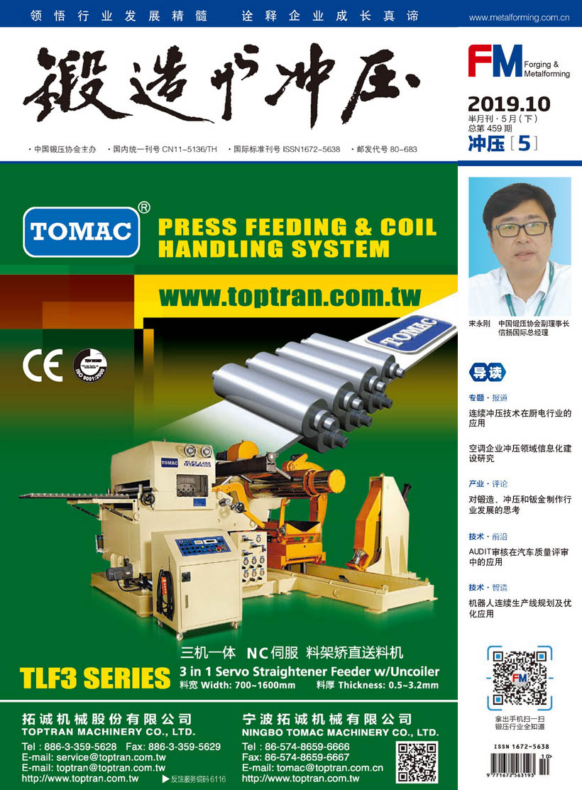 FM《鍛造與沖壓》由中國鍛壓協(xié)會主辦,是一本以市場需求為導向,集信息、技術、產(chǎn)品、市場與管理為一體的綜合性高端雜志。月發(fā)行量2.5萬冊,采取B2B發(fā)行模式,具有鍛壓行業(yè)針對性最強、覆蓋有效率最高的讀者群體,是中國鍛壓行業(yè)的領銜雜志媒體,受到國內(nèi)外廣泛的認可。