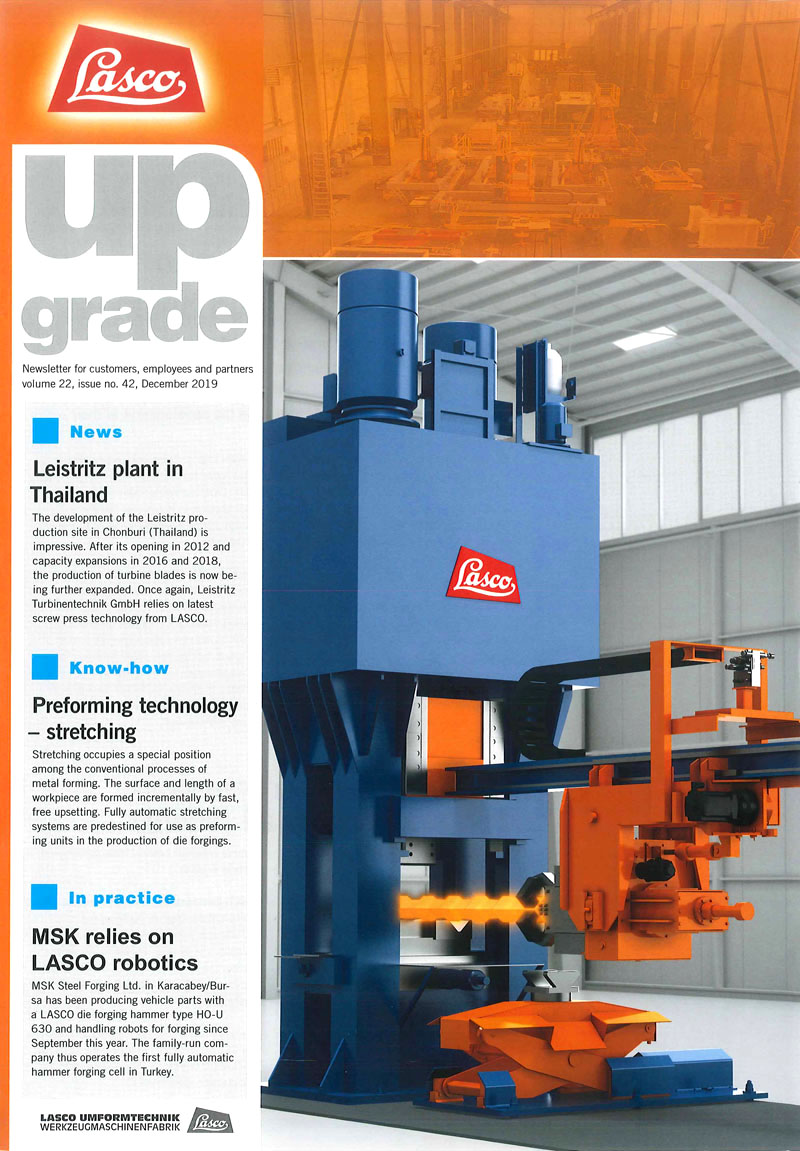 LASCO公司是液壓動力應(yīng)用于鍛造行業(yè)的領(lǐng)頭兵,其生產(chǎn)的各種液壓機可以實現(xiàn)各種鍛造和沖壓成形。生產(chǎn)的電鐓設(shè)備已處于世界一流。