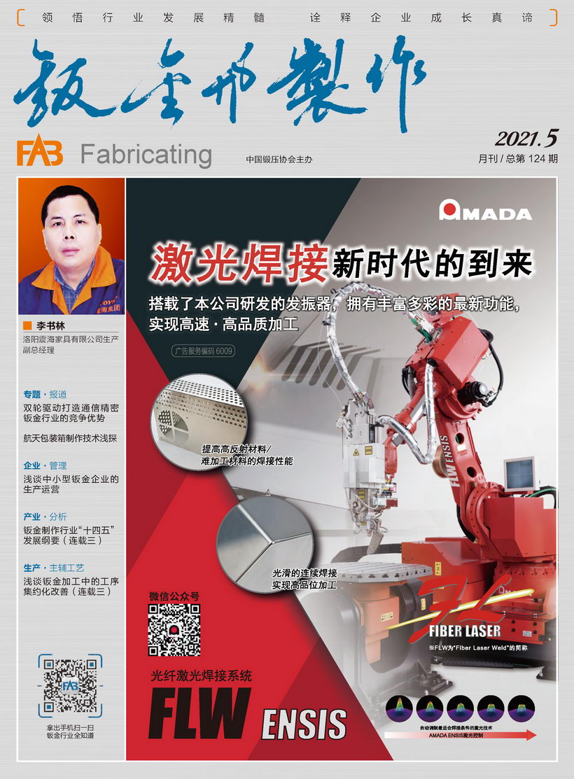 《鈑金與制作》雜志是中國(guó)鍛壓協(xié)會(huì)主辦的目前國(guó)內(nèi)惟一一本面向鈑金制作、管型線材加工行業(yè)的綜合性高端雜志。憑借中國(guó)鍛壓協(xié)會(huì)多年服務(wù)鈑金和管型線材行業(yè)的優(yōu)勢(shì),努力搭建供應(yīng)商與用戶企業(yè)間的信息平臺(tái),做好政府、高校、科研院所及企業(yè)間溝通的橋梁。