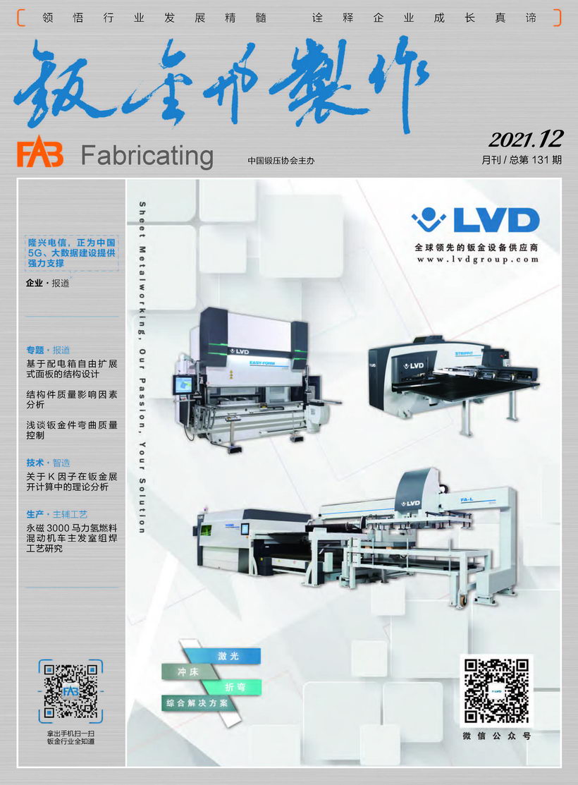 《鈑金與制作》雜志是中國鍛壓協(xié)會(huì)主辦的目前國內(nèi)惟一一本面向鈑金制作、管型線材加工行業(yè)的綜合性高端雜志。憑借中國鍛壓協(xié)會(huì)多年服務(wù)鈑金和管型線材行業(yè)的優(yōu)勢,努力搭建供應(yīng)商與用戶企業(yè)間的信息平臺,做好政府、高校、科研院所及企業(yè)間溝通的橋梁。