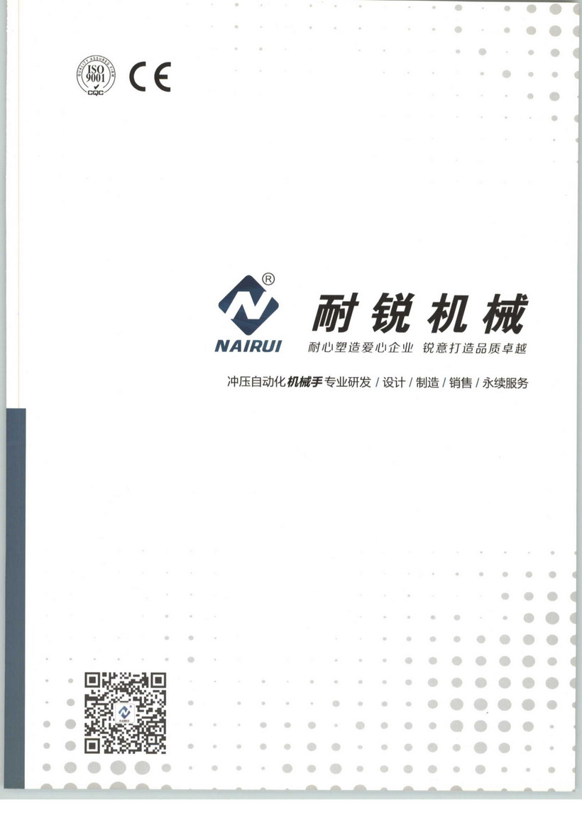 東莞市耐銳機械有限公司成立于2003年,公司廠房占地面積二十畝,擁有員工110余人,其中專業(yè)設(shè)計團隊15人,半數(shù)擁有本科及以上學歷。是一家專業(yè)致力于沖床周邊自動化設(shè)備的研發(fā)、生產(chǎn)、銷售企業(yè)。公司秉承著“耐心塑造愛心企業(yè),銳意打造卓越品質(zhì)”的企業(yè)宗旨和“篤守誠信,銳意進取,務實創(chuàng)新,專業(yè)服務”的企業(yè)精神,先進的生產(chǎn)工藝,高效的管理控制,完善的品質(zhì)體系,周到完備的售后服務,設(shè)計生產(chǎn)提供高速沖床周邊設(shè)備,品質(zhì)卓越,性能穩(wěn)定。通過多年的發(fā)展,公司已具備了專業(yè)化,規(guī)?;纳a(chǎn)能力。主要產(chǎn)品:二次元、三次元機械手、連桿機械手、獨立機械手、模內(nèi)機械手、拆垛機、高速滾輪送料機、新型高速夾式送料機、NCF滾輪送料機、精密整平機、三合一料架整平送料機、皮帶式高速齒輪更換式送料機及其它沖床周邊自動化設(shè)備。