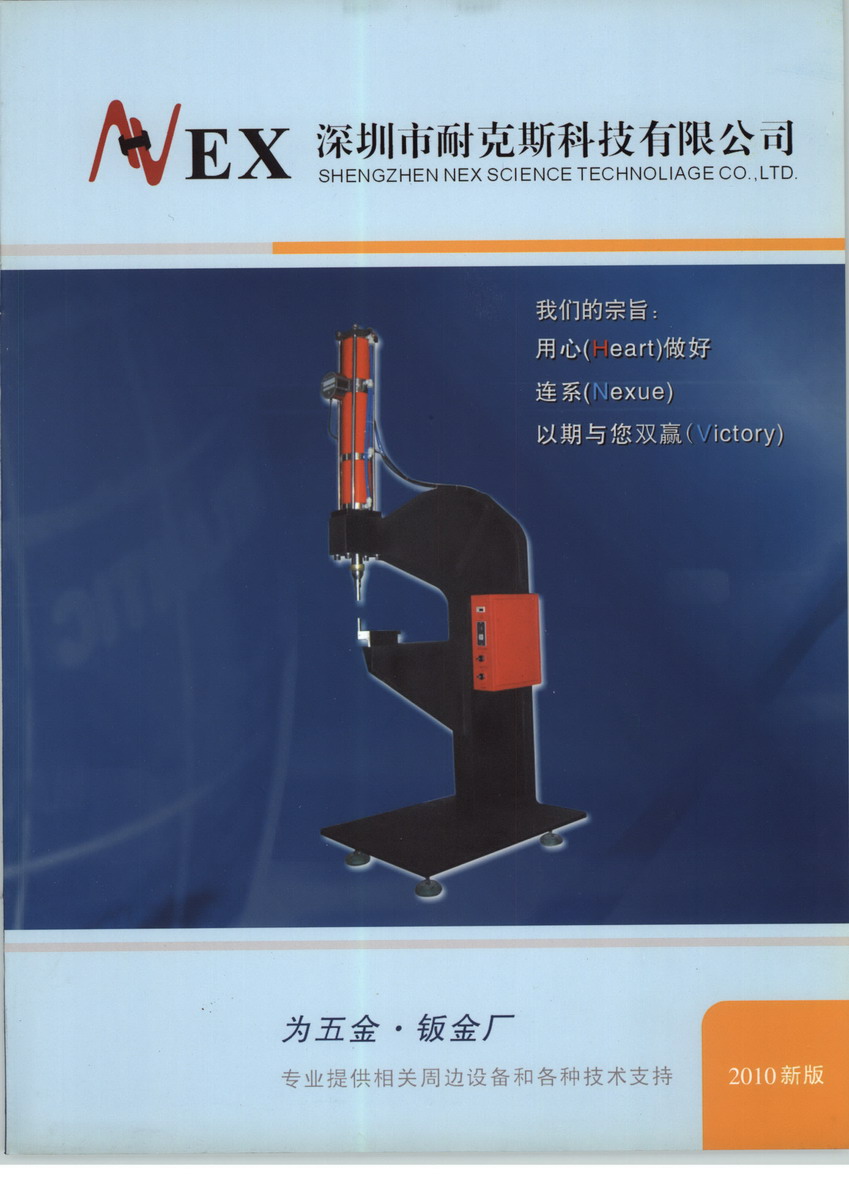 深圳市耐克斯科技有限公司由日本光榮通商株式會(huì)社提供技術(shù)和資金支持的、專業(yè)從事機(jī)電產(chǎn)品研發(fā)和制作、集技開(kāi)發(fā)、生產(chǎn)、貿(mào)易于一體的高技術(shù)含量的民營(yíng)企業(yè)。耐克斯以技術(shù)創(chuàng)新為宗旨,以向五金加工企業(yè)提供各種技術(shù)服務(wù)為經(jīng)營(yíng)方向,著重于實(shí)用、高效、節(jié)能、高品質(zhì)的加工設(shè)施的研制,并極力向國(guó)人推廣世界各種先進(jìn)機(jī)械加工技術(shù),目前已開(kāi)發(fā)的產(chǎn)品有螺栓螺母壓裝機(jī)(即壓鉚機(jī))氣液增力缸、氣動(dòng)高速?zèng)_床、數(shù)控折彎?rùn)C(jī)、精密壓裝機(jī)等多系列產(chǎn)品。