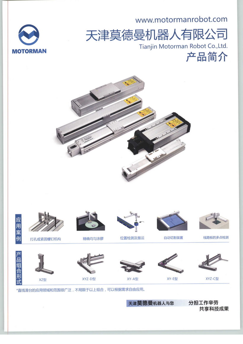 天津莫德曼機器人有限公司成立于二零一一年七月,位于天津市靜海經濟技術開發(fā)區(qū)北區(qū)。公司長期專注于工業(yè)機器人產品的科技研發(fā)、生產制造、銷售和應用服務。公司主要產品包括:精密定位平臺;XY直線滑臺;工業(yè)機械手臂;龍門式機械手;自動化傳動原件、直線電機等。