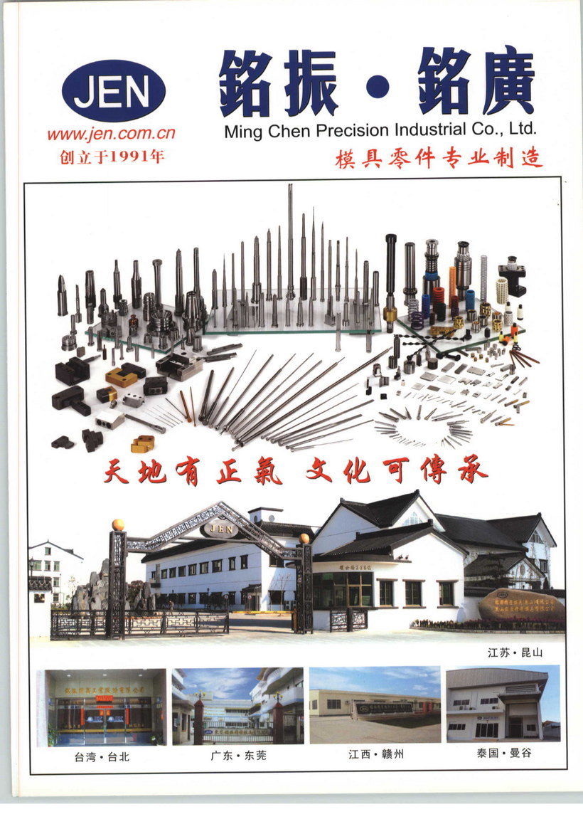 銘振企業(yè)是一家集研發(fā)、生產(chǎn)、銷售、服務(wù)于一體的綜合性模具配件公司,企業(yè)擁有二十幾年模具配件生產(chǎn)及管理經(jīng)驗,有一支經(jīng)驗豐富、技術(shù)精湛、凝聚力強的近千人隊伍。主營各類塑膠模、沖壓模標(biāo)準(zhǔn)和非標(biāo)零配件。銘振企業(yè)于1991年從臺灣創(chuàng)立發(fā)展至今在廣東東莞、江蘇昆山、江西贛州、泰國曼谷設(shè)有公司。企業(yè)從日本、美國、臺灣等地引進加工設(shè)備,現(xiàn)有SEIBU、SODICK、FANUC精密慢走絲線切割機,CNC高速加工中心,CNC精密車床,CNC精密車銑復(fù)合加工機,數(shù)控深孔加工機,EDM精密放電加工機,無心研磨、頂心內(nèi)外研磨、精密平面成型研磨、自動平面研磨、內(nèi)孔研磨、沖子研磨、真空熱處理、鹽浴氮化等精密設(shè)備。企業(yè)現(xiàn)有日本、瑞士等地精密檢測儀器,如Trimos高度儀,三豐工具顯微鏡,尼康投影儀,真圓度測量儀,表面粗糙儀,洛氏、維氏硬度儀等。企業(yè)產(chǎn)品有塑膠模(化妝品類、醫(yī)療用品類、消費電子產(chǎn)品類等)、沖壓模具、橡塑模具、汽車模具等各類標(biāo)準(zhǔn)零配件及非標(biāo)準(zhǔn)零配件,客制化產(chǎn)品,自動化設(shè)備組件,工裝夾具等。銘振企業(yè)將以更專業(yè)的技術(shù)與更精密的設(shè)備,為客戶提供優(yōu)質(zhì)產(chǎn)品與服務(wù)。