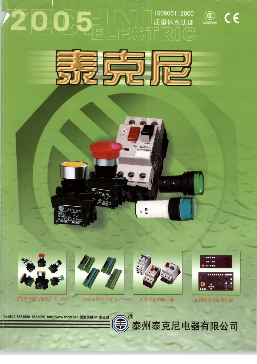泰州泰克尼電器有限公司是香港哥羅集團在大陸投資的一家獨資企業(yè)。公司成立于1992年,是國內(nèi)率先消化吸收國外先進技術,專業(yè)生產(chǎn)低壓電器產(chǎn)品廠家。目前生產(chǎn)的主要產(chǎn)品有:LAY7系列、LA117系列按鈕開關、DZ163小型斷路器系列、DZ163L漏電斷路器、TA86系列墻壁開關,以及動力、照明配電箱等六大類產(chǎn)品。