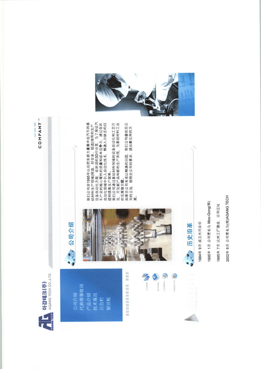 AGANG TECH公司自1995年以后把全部力量集中在汽車的基礎(chǔ)材料生產(chǎn)領(lǐng)域(鑄造、輕合金、鍛造)使用的生產(chǎn)設(shè)備自動(dòng)化方面,在所謂的3D行業(yè)里,為了保證汽車產(chǎn)業(yè)的核心零件的質(zhì)量和成本競(jìng)爭(zhēng)力,通過在非自動(dòng)化領(lǐng)域中引入自動(dòng)化技術(shù),解決人力缺乏的問題和提高生產(chǎn)效率。
