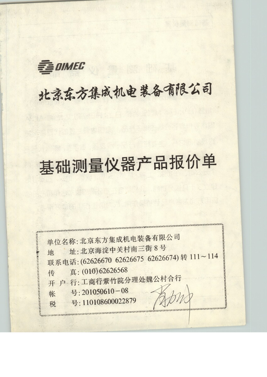 北京東方集成機電裝備有限公司(簡稱 OIMEC),是中國科學(xué)院東方科工貿(mào)集團的下屬企業(yè)之一。在集團多元化的業(yè)務(wù)中,OIMEC的主營業(yè)務(wù)方向是為電子、通訊、工業(yè)控制、半導(dǎo)體工業(yè)、石化工業(yè)領(lǐng)域提供廣泛的測試、測量儀器、儀表、工具和設(shè)備,同時為以上用戶提供生產(chǎn)線系統(tǒng)集成,通訊網(wǎng)絡(luò)集成和無線計算機網(wǎng)絡(luò)接入方案。 OIMEC目前年營業(yè)規(guī)模近2億元人民幣, 是FLUKE、HP、TEKTRONIX、WAVETEK、NICOLET、KENWOOD、MOTOROLA、GLENAYRE、RDC、GRE、TTC、AMETEK、HIOKI 等世界著名廠商的中國合作伙伴。
