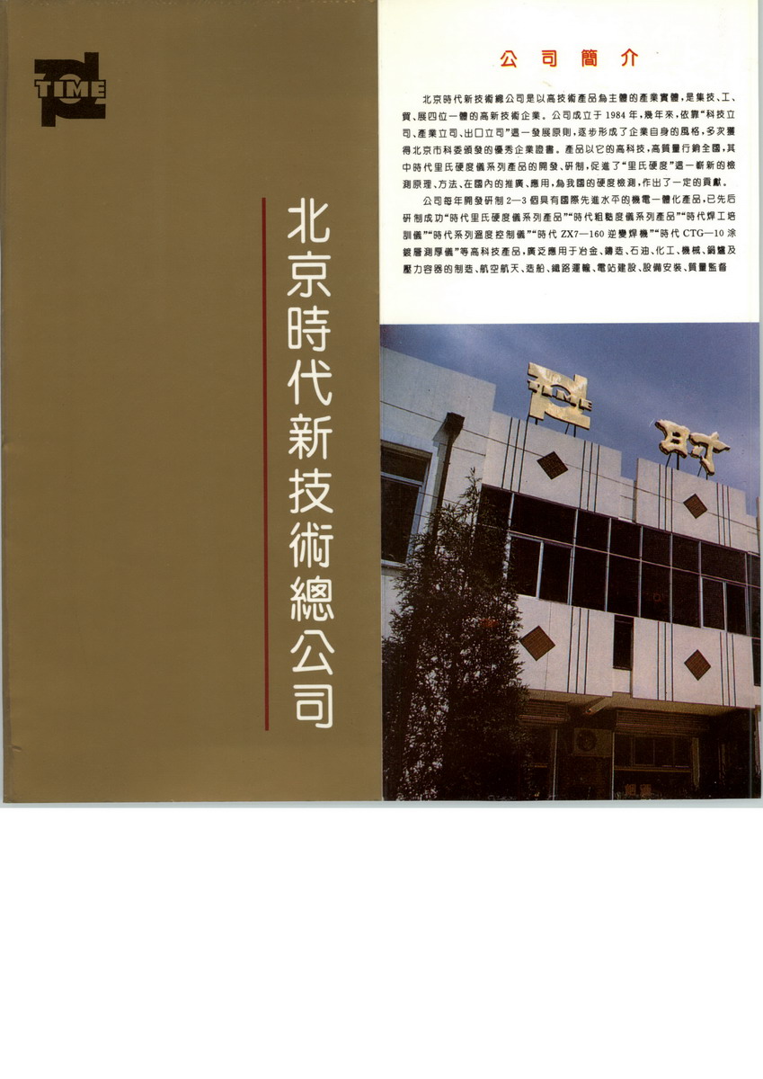 時代集團公司成立于1984年10月,由彭偉民、王小蘭等一批科技人員創(chuàng)辦,是北京中關村地區(qū)成立最早、我國機電行業(yè)的現(xiàn)代高科技制造先鋒企業(yè)。