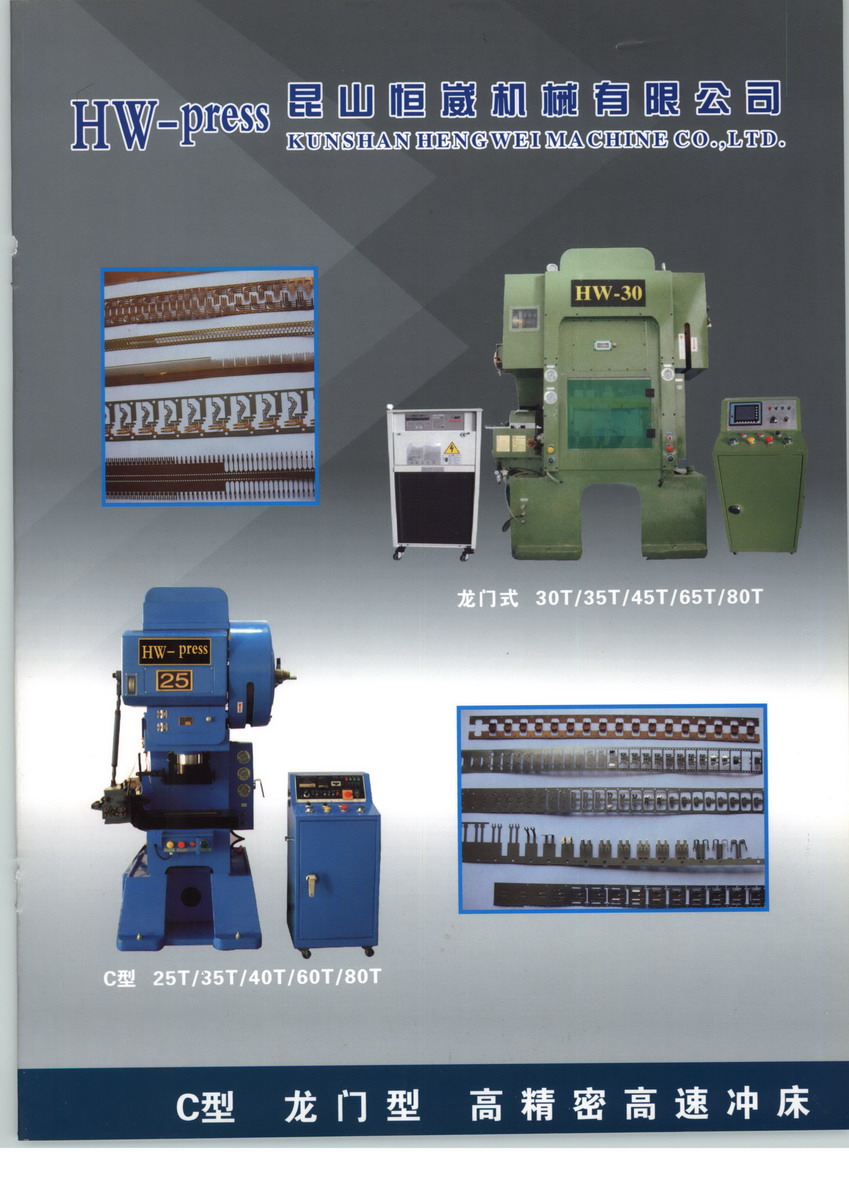 昆山恒崴機(jī)械有限公司經(jīng)過(guò)多年的拼搏發(fā)展,現(xiàn)已擁有現(xiàn)代化生產(chǎn)設(shè)備和國(guó)際一流的技術(shù)力量,是一家集研發(fā)、制造、銷售、安裝、維修服務(wù)于一體的沖床生產(chǎn)商,主要生產(chǎn)C型沖床、H型沖床、高精密強(qiáng)力鋼架沖床、超高精密肘節(jié)式?jīng)_床,公司可按客戶需要設(shè)計(jì)制造沖床周邊設(shè)備,可完成從工藝流程、設(shè)備選型、生產(chǎn)制造、安裝調(diào)試、人員培訓(xùn)等一條龍服務(wù)。為滿足客戶所需,公司目前擁有江蘇、浙江、東莞等幾大生產(chǎn)基地,辦事處遍布全國(guó),產(chǎn)品并且遠(yuǎn)銷海內(nèi)外市場(chǎng)。