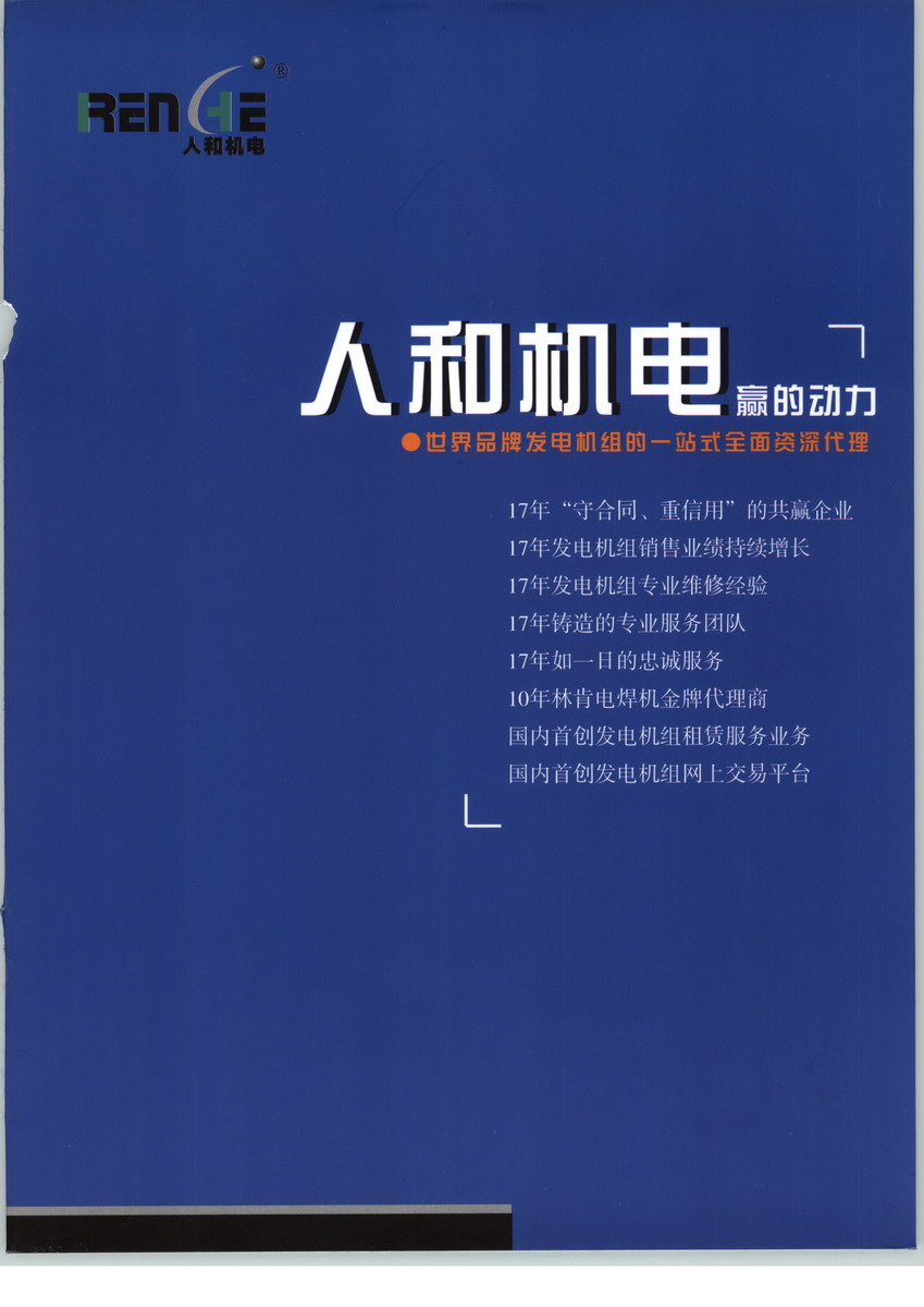 人和機(jī)電成立于1988年,是致力于提供世界著名品牌發(fā)電機(jī)組、電焊機(jī)及技術(shù)服務(wù)為主的專業(yè)公司。經(jīng)過18年的發(fā)展,擁有4個(gè)子公司、4個(gè)辦事處、1個(gè)電子商務(wù)中心,成為集發(fā)電機(jī)組的制造、銷售、租賃及設(shè)備的機(jī)房設(shè)計(jì)、相應(yīng)配套工程、維修服務(wù)與零配件供應(yīng)于一身的同行業(yè)最大的供應(yīng)商之一。北京人和世紀(jì)機(jī)電設(shè)備有限公司,主要經(jīng)營人和/康明斯系列柴油發(fā)電機(jī)組;人和/大宇系列柴油發(fā)電機(jī)組;人和/富豪系列柴油發(fā)電機(jī)組,公司注冊資本未知,我公司的辦公地址位于中國的首都,政治、文化中心北京,中國 北京 北京市 朝陽區(qū)東三環(huán)北路3號幸福大廈A座1205室,我們有最好的產(chǎn)品和專業(yè)的銷售和技術(shù)團(tuán)隊(duì),我們?yōu)榭蛻籼峁┳詈玫漠a(chǎn)品、良好的技術(shù)支持、健全的售后服務(wù),北京人和世紀(jì)機(jī)電設(shè)備有限公司是北京柴油發(fā)電機(jī)組行業(yè)知名企業(yè),如果您對我公司的產(chǎn)品服務(wù)有興趣,請?jiān)诰€留言或者來電咨詢。