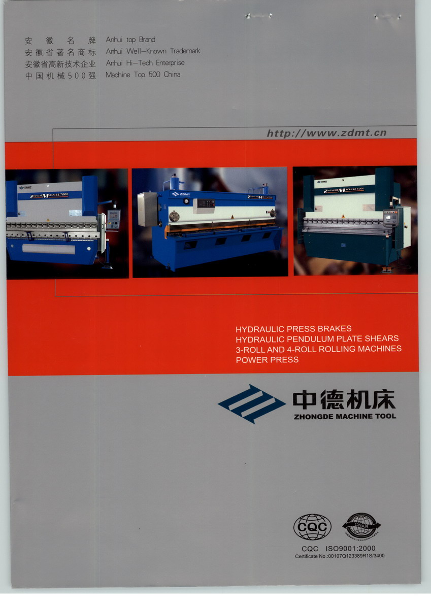 安徽中德機(jī)床股份有限公司于2002年12月26日經(jīng)安徽省人民政府批準(zhǔn)設(shè)立(批準(zhǔn)文號(hào):皖政股[2002]第44號(hào)),公司注冊(cè)資本人民幣2200萬元。公司前身為馬鞍山市中德機(jī)床廠,系生產(chǎn)各類普通及數(shù)控折彎?rùn)C(jī)、剪板機(jī)、壓力機(jī)、三、四輥卷板機(jī)、聯(lián)合沖剪機(jī)、切角機(jī)、刃模具配件的現(xiàn)代化管理企業(yè)。公司地址位于安徽省馬鞍山市博望區(qū),其中各類機(jī)械工程師占員工人數(shù)的30%以上,服務(wù)于公司研發(fā)、生產(chǎn)、售后各條線上,公司在全國(guó)各大中城市分布銷售網(wǎng)點(diǎn)達(dá)二十余個(gè)。目前產(chǎn)品更是銷往世界六十多個(gè)國(guó)家和地區(qū),并與十多個(gè)國(guó)家和地區(qū)的專業(yè)機(jī)床經(jīng)銷商形成固定的合作代理關(guān)系。
