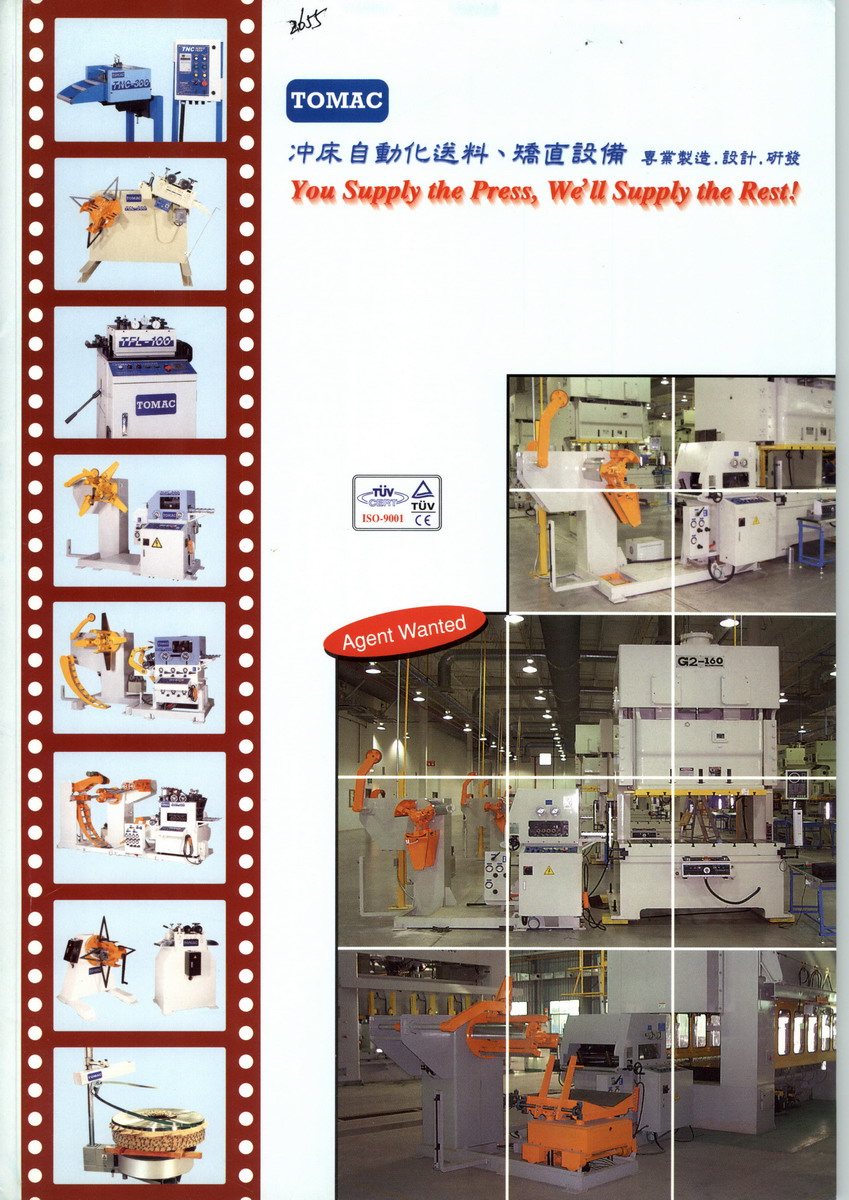 拓誠機械股份有限公司已有10多年的歷史,專業(yè)制造沖床送料機、料架矯直機、伺服送料機、開卷機,累積豐富的生產(chǎn)經(jīng)驗及卓越的研發(fā)設(shè)計能力并引進日本專業(yè)技術(shù),在送料機同業(yè)中堪稱首屈一指之制造廠商,擁有規(guī)范的管理體系和一流的技術(shù),為客戶提供高品質(zhì)、高效能、人性化、自動化之優(yōu)良產(chǎn)品。本公司一直秉持”質(zhì)量為企業(yè)之本”的管理觀念,已獲得ISO 9001的國際認(rèn)證,且三合一NC伺服送料機也通過CE國際認(rèn)證,產(chǎn)品行銷歐美及東南亞。