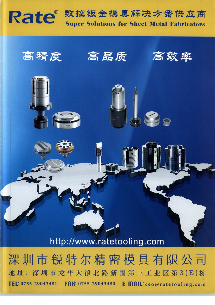 公司歷程:1990年公司發(fā)起人李冰先生進入高精密IC半導體模具及設(shè)備制造行業(yè),隨后創(chuàng)立誠義豐五金模具廠,從事精密機械零件加工及沖壓模具的設(shè)計與制造。2001年成立深圳市誠義豐機電科技有限公司,從事高精密機械零件加工、非標精密設(shè)備及數(shù)控沖床(NCT)模具設(shè)計制造。2005年成立銳特爾(Rate)精密模具廠,專注于數(shù)控沖床(NCT)模具的研發(fā)與制造,全心塑造“Rate銳特爾”民族品牌,以提升國產(chǎn)數(shù)控模具的競爭力為己任。 Rate設(shè)備CNC高速加工中心機、CNC車床、CNC慢走絲線切割機、CNC電火花成型機、高速內(nèi)圓磨床、高精度外圓磨床、精密平面磨床、激光打標機等先進設(shè)備及微電腦高度儀、光學投影機、洛氏硬度計等高精檢測設(shè)備。Rate專業(yè)數(shù)控沖床模具的研發(fā)與制造,多年來廣泛應用于AMADA、FINN-POWER、STRIPPIT、KOMATSU、TRUMPF、LVD、WIEDEMANN、EUROMAC、TAILIFT、LFK、HACO、BOSCHERT、捷邁、金方圓、揚力、大同、亞威、匯力等數(shù)控沖床。技術(shù)特長Rate主要負責人1990年就從事于高精度IC半導體模具制作,將高精密加工領(lǐng)域積累的實踐經(jīng)驗運用于數(shù)控沖床模具研制,使國產(chǎn)模具精度完全可以和進口模具互換;與理工學院共同研發(fā)出特殊模具鋼(專門針對不銹鋼),采用了特別的熱處理及表面強化工藝,學習了美國、徳國、日本等同行的先進加工工藝,同步應用高速CBN磨削,慢走絲線切割下模,極大的改善了傳統(tǒng)工藝加工的下模易帶料、刃口粗糙、不耐磨,沖頭脆性大、韌性差、整體壽命短等多方面的缺陷。Rate已形成專業(yè)化批量生產(chǎn),建立了完全的半成品、全成品庫存,實現(xiàn)了網(wǎng)絡(luò)化倉儲管理,以縮短交貨期,以滿足客戶短、平、快的市場需求。服務(wù)客戶POSSEHL、KINERGY、SANYO、EPSON、STARWAY、PARKWELL、GRT、FLEXTRONICS、VIASYSTEMS、FUREACH、HELON、HONEYCOMB、邁瑞醫(yī)療、FOXCONN富士康、EVOC研祥工控、ZTE中興、聯(lián)亨實業(yè)、TOMIMAYA富山技研、同向興業(yè)、NEXGRILL唯可、東莞開關(guān)、臺鉅、國靈空調(diào)、佛分、順德開關(guān)、番禺開關(guān)、北江開關(guān)等。